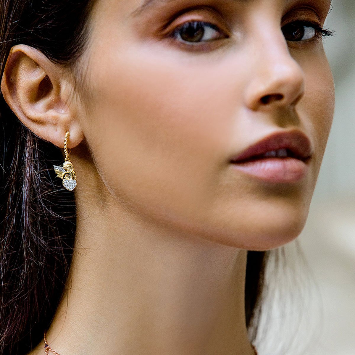 Orecchino singolo con cerchio e soggetto angioletto con zirconi bianchi