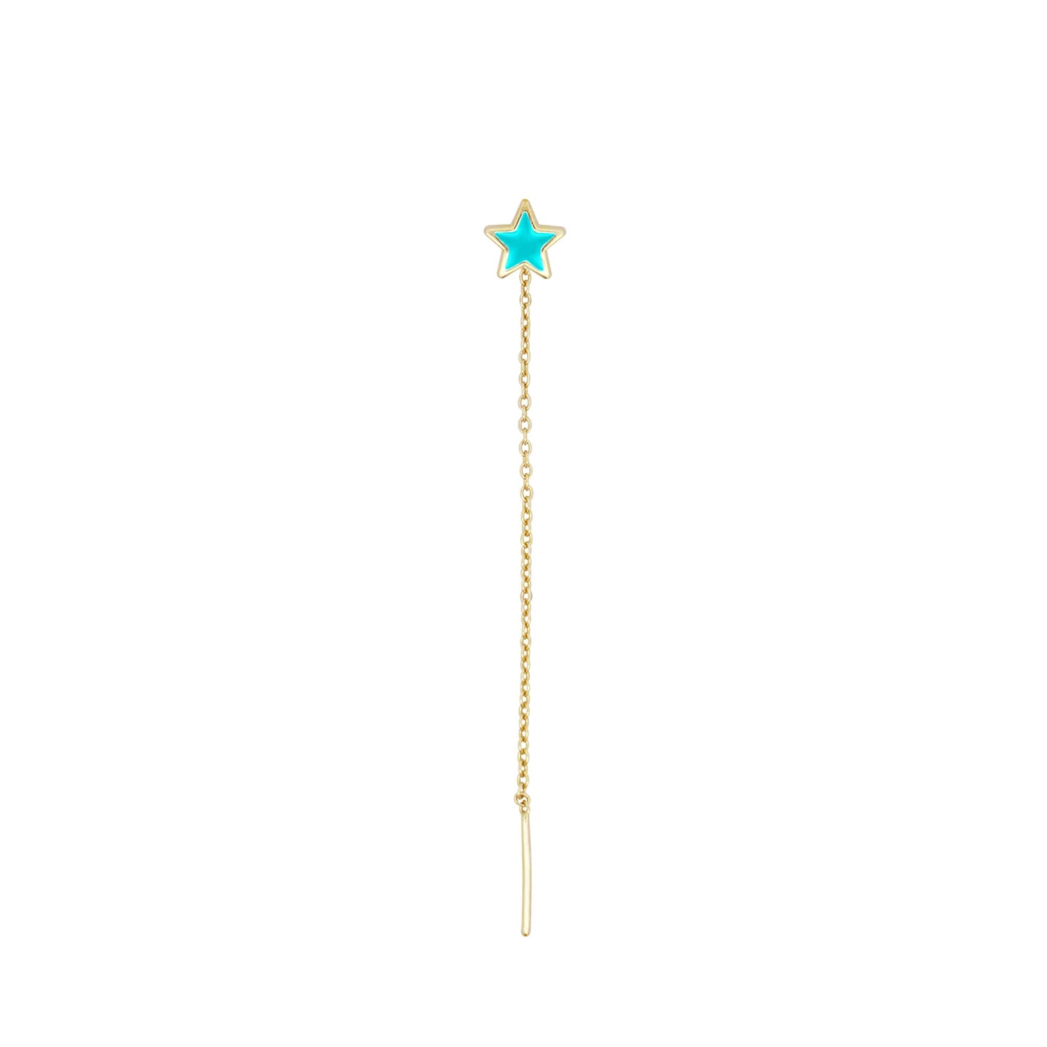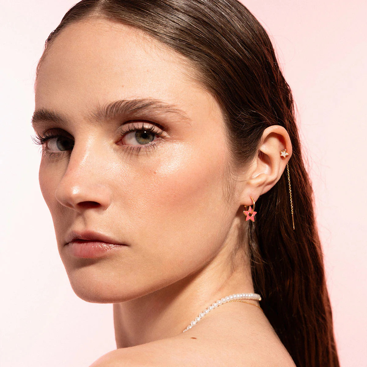 Mono-orecchino con catenella pendente e stellina smaltata a mano. La stella, soggetto iconico di Rue des Mille, si colora di fucsia, verde, turchese, bianco, viola.