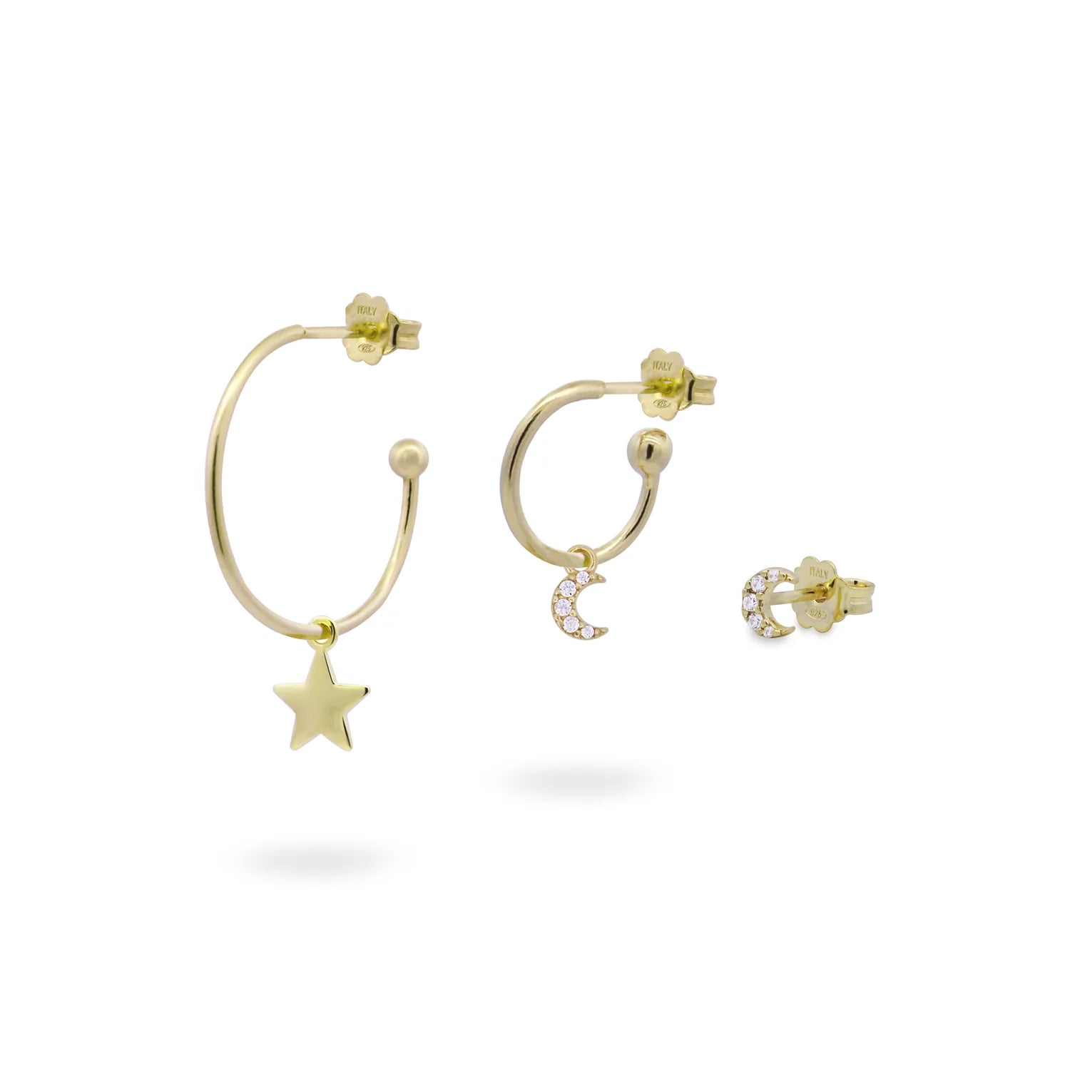 RUE DES MILLE - ORECCHINI SET 3 PEZZI STELLA/LUNA/LUNA