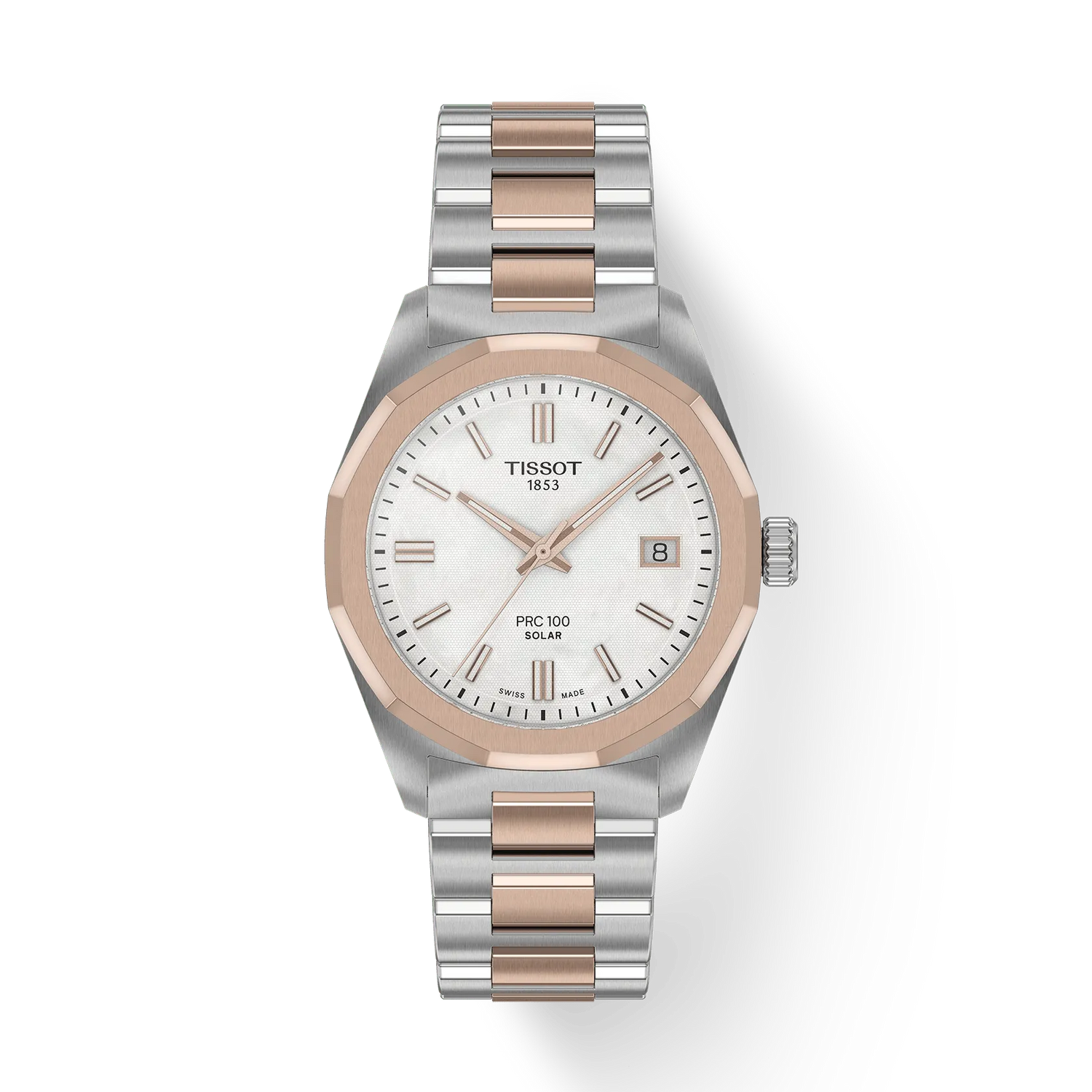 Introdotto per la prima volta a metà degli anni 2000, il PRC 100 grazie al suo design straordinario si è ritagliato da subito un posto nella collezione Tissot. Oggi ritorna con un movimento pionieristico Lightmaster Solar Quartz, che sfrutta l'energia fotovoltaica per alimentare ogni secondo. Con la sua cassa in acciaio da 34 mm e la lunetta dodecagonale, questo modello emana sicurezza. Sotto l'elegante vetro zaffiro si nasconde un movimento al quarzo a energia solare, progettato per ricaricarsi senza fatica sia con la luce naturale che con quella artificiale. L'indicatore di fine energia garantisce prestazioni ottimali, mentre la compatibilità con il cinturino da 18 mm consente di personalizzare il proprio stile, sia con la classica pelle che con le moderne opzioni.