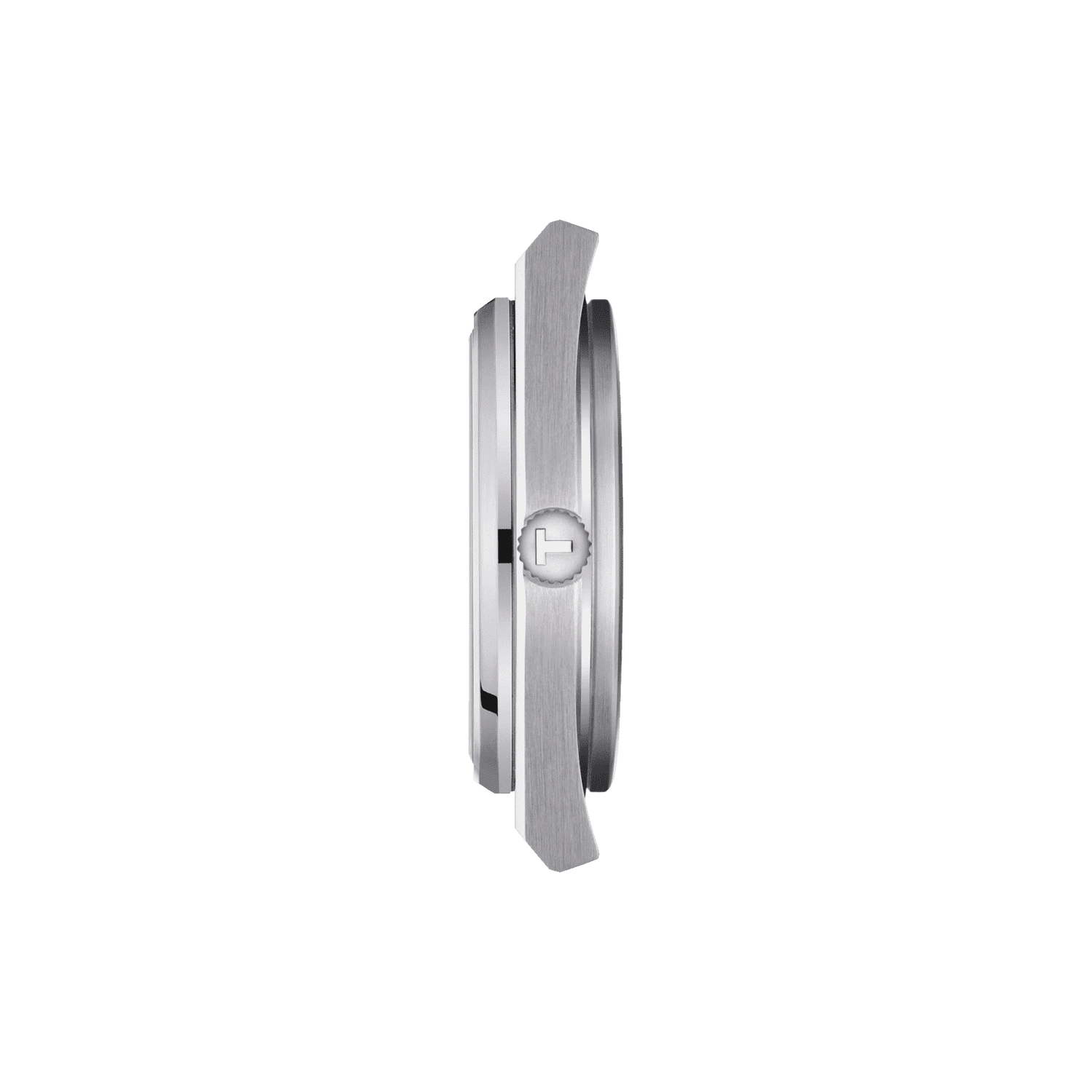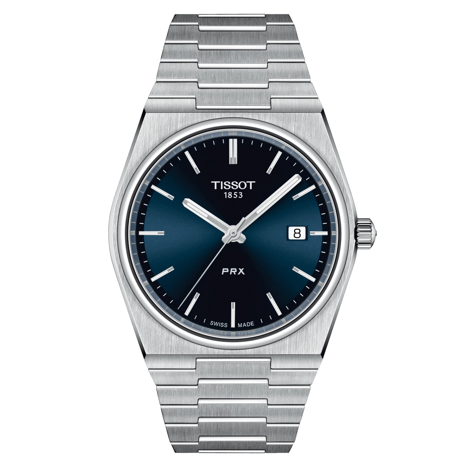 Nel 1978 Tissot creò un modello al quarzo, caratterizzato da una cassa sottile, indici stretti e un bracciale in acciaio. La sua ampia ansa orizzontale, tipica dell'epoca, era perfettamente integrata nella cassa piatta a forma di tonneau. Pochi anni dopo, Tissot ha registrato il nome PRX. "PR" sta per "preciso" e "robusto". La "X" sta per il numero romano dieci e per la pressione di 10 bar che l'orologio è in grado di sopportare. Nel 2021 Tissot ha presentato il PRX 40205, È una versione moderna del modello precedente. La cassa in acciaio inossidabile 316L del Tissot PRX 40205 ha un diametro di 40 mm. Ha una forma leggermente tonneau ed è ornato da una lunetta stretta e rotonda. Ai lati, spazzolate verticalmente, finiture arrotondate si alternano a sfaccettature lucide. Il Tissot PRX 40205 Quartz è dotato di un quadrante con un motivo a raggiera nero o blu in combinazione con indici e lancette nichelati. Esiste anche una variante con quadrante grigio argento satinato con indici e lancette color oro rosa, una combinazione di colori che ricorda la fine degli anni '70. La flessibilità e morbidezza delle maglie ne fanno un vero successo di design ergonomico e trasmettono uno straordinario comfort. Le lancette del PRX 40 205 sono dotate di un rivestimento SuperLumiNova® e sono posizionate l'una sull'altra con uno spazio minimo. Ciò consente di avvicinare il quadrante al vetro dell'orologio. L'effetto ottico ottenuto dai designer Tissot fa sembrare la cassa dell'orologio ancora più piatta e sottile di quanto non sia in realtà.