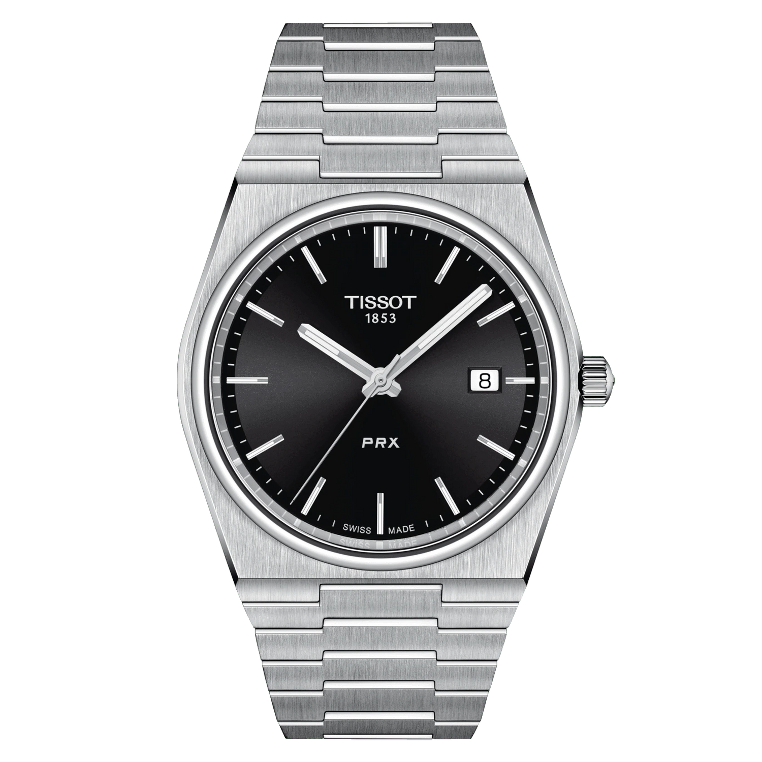 Nel 1978 Tissot creò un modello al quarzo, caratterizzato da una cassa sottile, indici stretti e un bracciale in acciaio. La sua ampia ansa orizzontale, tipica dell'epoca, era perfettamente integrata nella cassa piatta a forma di tonneau. Pochi anni dopo, Tissot ha registrato il nome PRX. "PR" sta per "preciso" e "robusto". La "X" sta per il numero romano dieci e per la pressione di 10 bar che l'orologio è in grado di sopportare. Nel 2021 Tissot ha presentato il PRX 40205, È una versione moderna del modello precedente. La cassa in acciaio inossidabile 316L del Tissot PRX 40205 ha un diametro di 40 mm. Ha una forma leggermente tonneau ed è ornato da una lunetta stretta e rotonda. Ai lati, spazzolate verticalmente, finiture arrotondate si alternano a sfaccettature lucide. Il Tissot PRX 40205 Quartz è dotato di un quadrante con un motivo a raggiera nero o blu in combinazione con indici e lancette nichelati. Esiste anche una variante con quadrante grigio argento satinato con indici e lancette color oro rosa, una combinazione di colori che ricorda la fine degli anni '70. La flessibilità e morbidezza delle maglie ne fanno un vero successo di design ergonomico e trasmettono uno straordinario comfort. Le lancette del PRX 40 205 sono dotate di un rivestimento SuperLumiNova® e sono posizionate l'una sull'altra con uno spazio minimo. Ciò consente di avvicinare il quadrante al vetro dell'orologio. L'effetto ottico ottenuto dai designer Tissot fa sembrare la cassa dell'orologio ancora più piatta e sottile di quanto non sia in realtà.