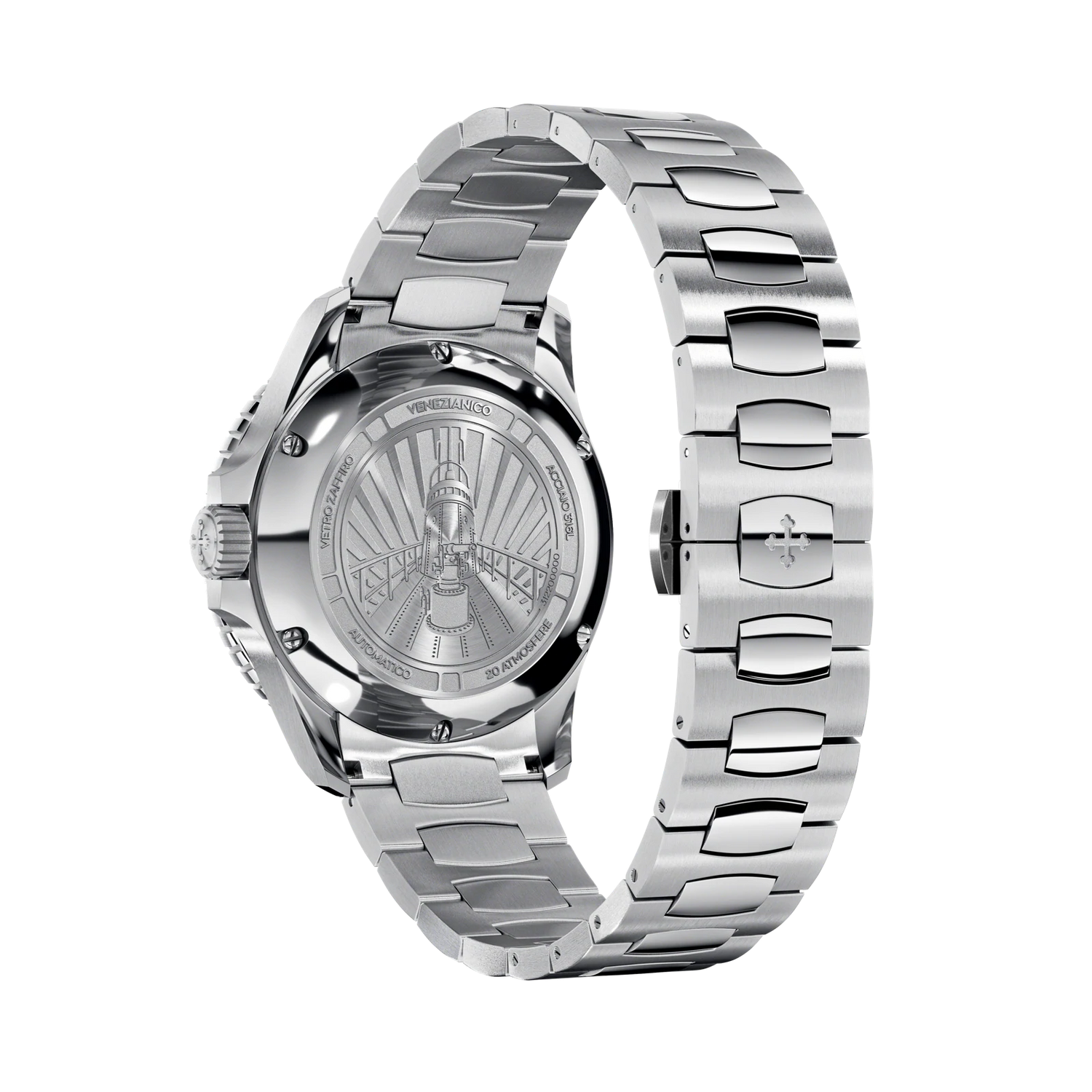 Il nostro orologio da immersione, impermeabile fino a 200 metri, prende il nome da una delle ultime meraviglie della tecnica navale veneziana, il sommergibile Nereide. Questo segnatempo è infatti progettato per resistere a forti sollecitazioni, rendendolo particolarmente adatto a chi pratica sport acquatici.